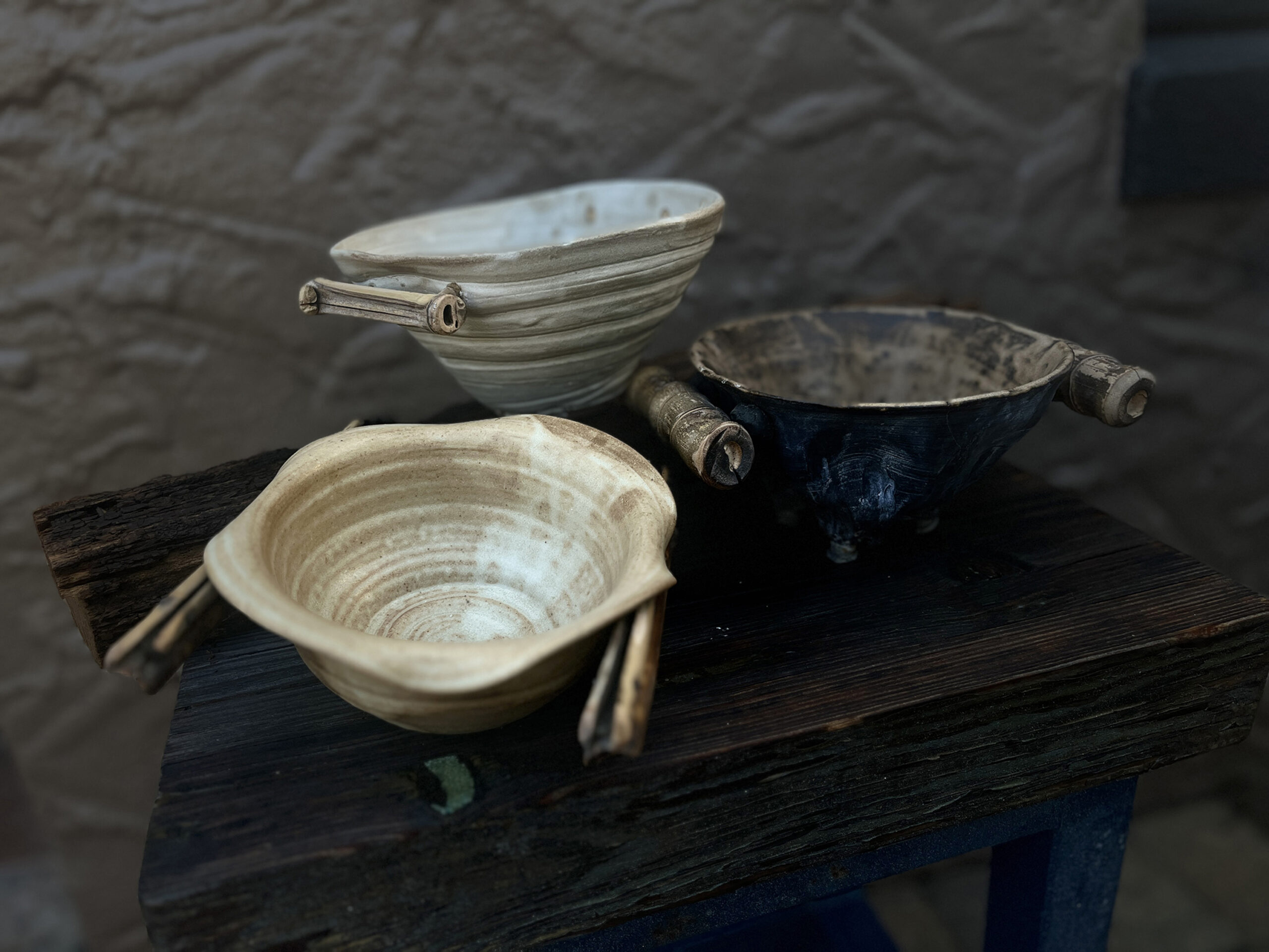 “I am currently exploring contrasting slips on dark clays with no glazes.”