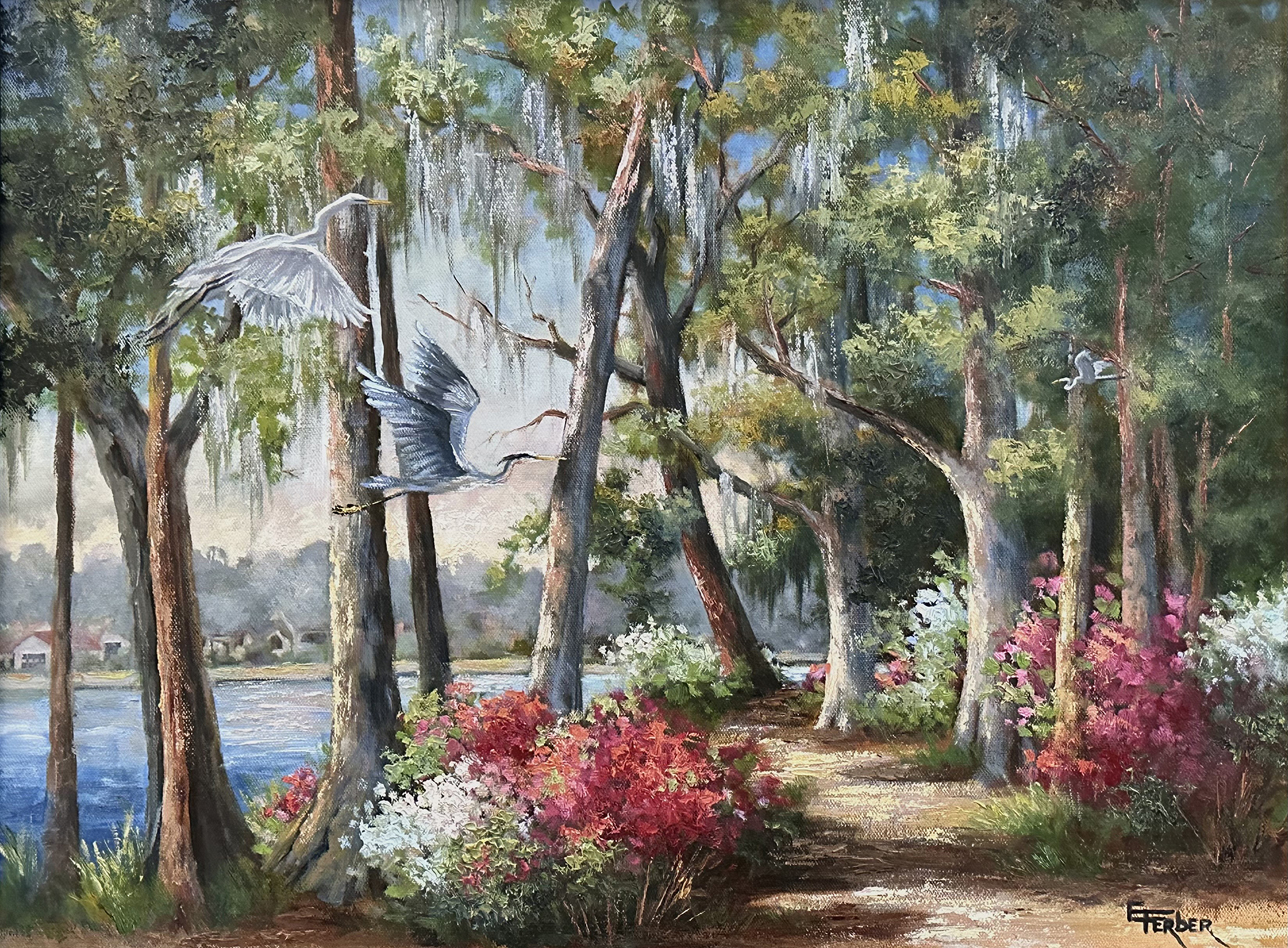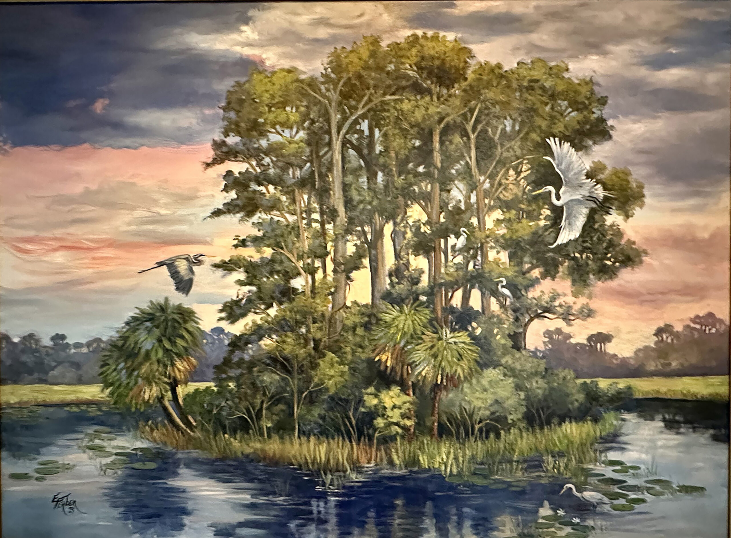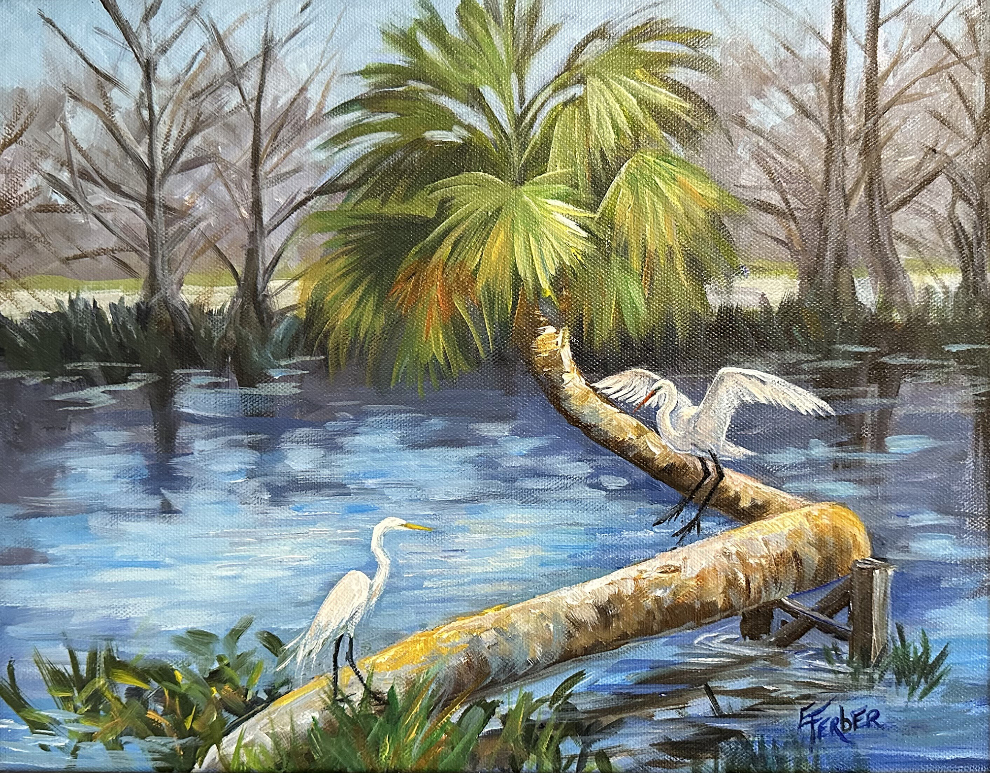 Elisabeth Ferber is a Florida landscape and wildlife painter. She paints primarily in oils and acrylics, often on location. Available works include originals, prints, framed and unframed, in various sizes from 4″x 4″ to 30″ x 40″. Come see the studio, gallery and watch her demo.