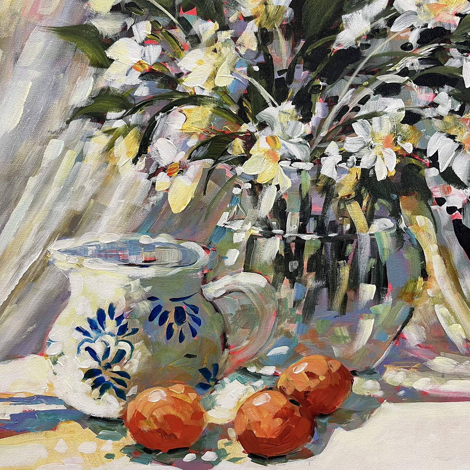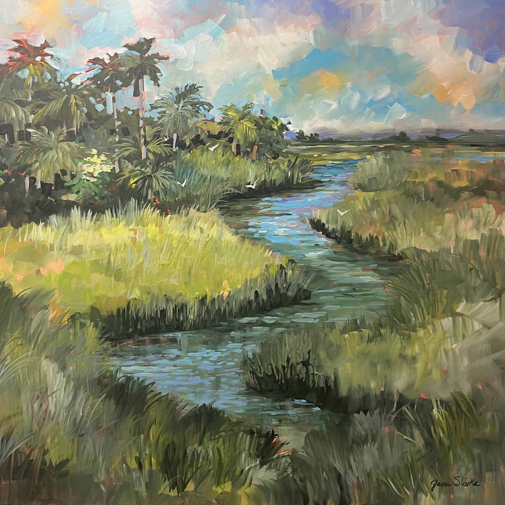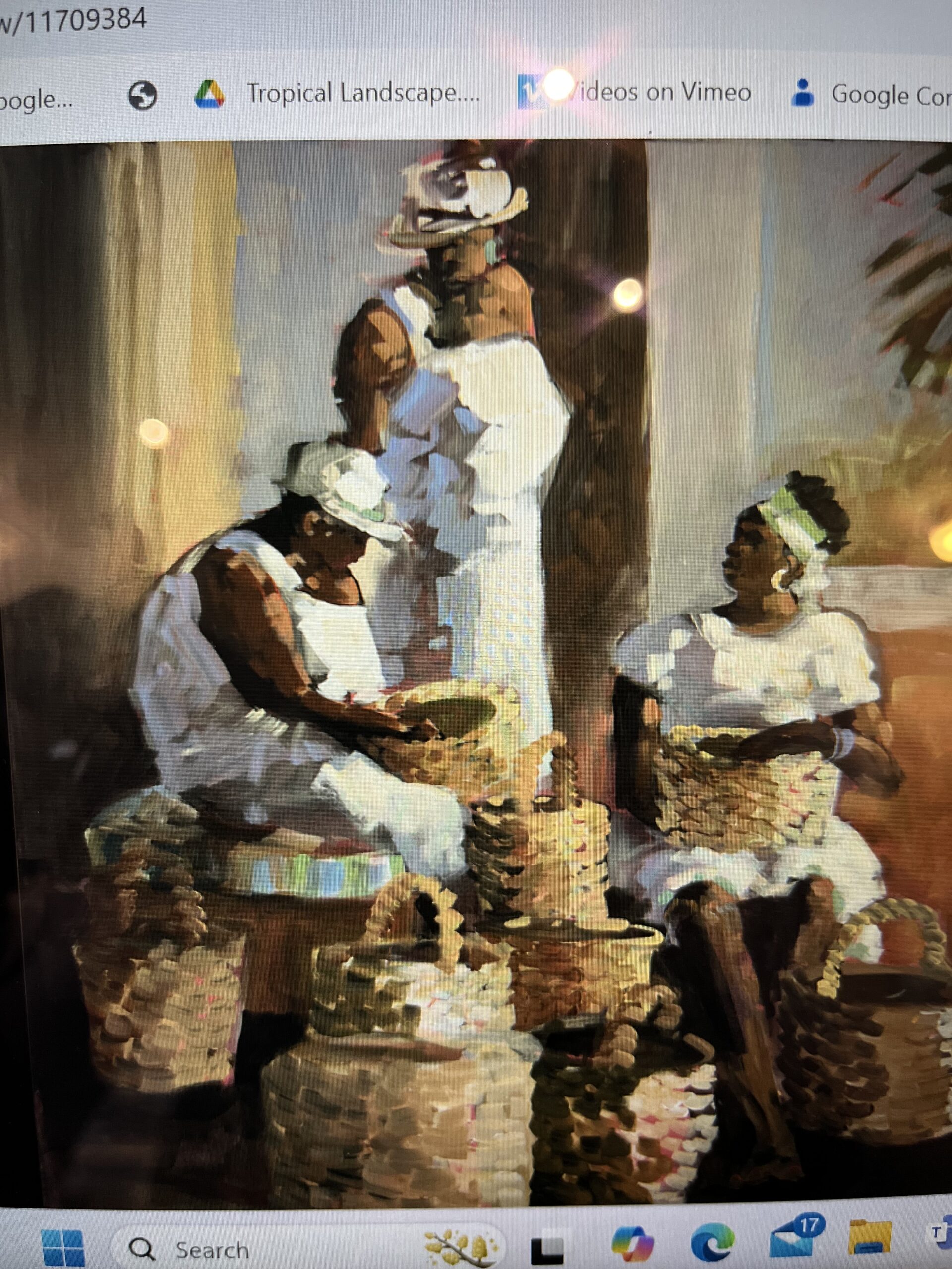 “My acrylic paintings are bold and spontaneous using bold brushstrokes and vivid color. I like to focus on bright light and energy using tropical themes and Island life as my subject matter”