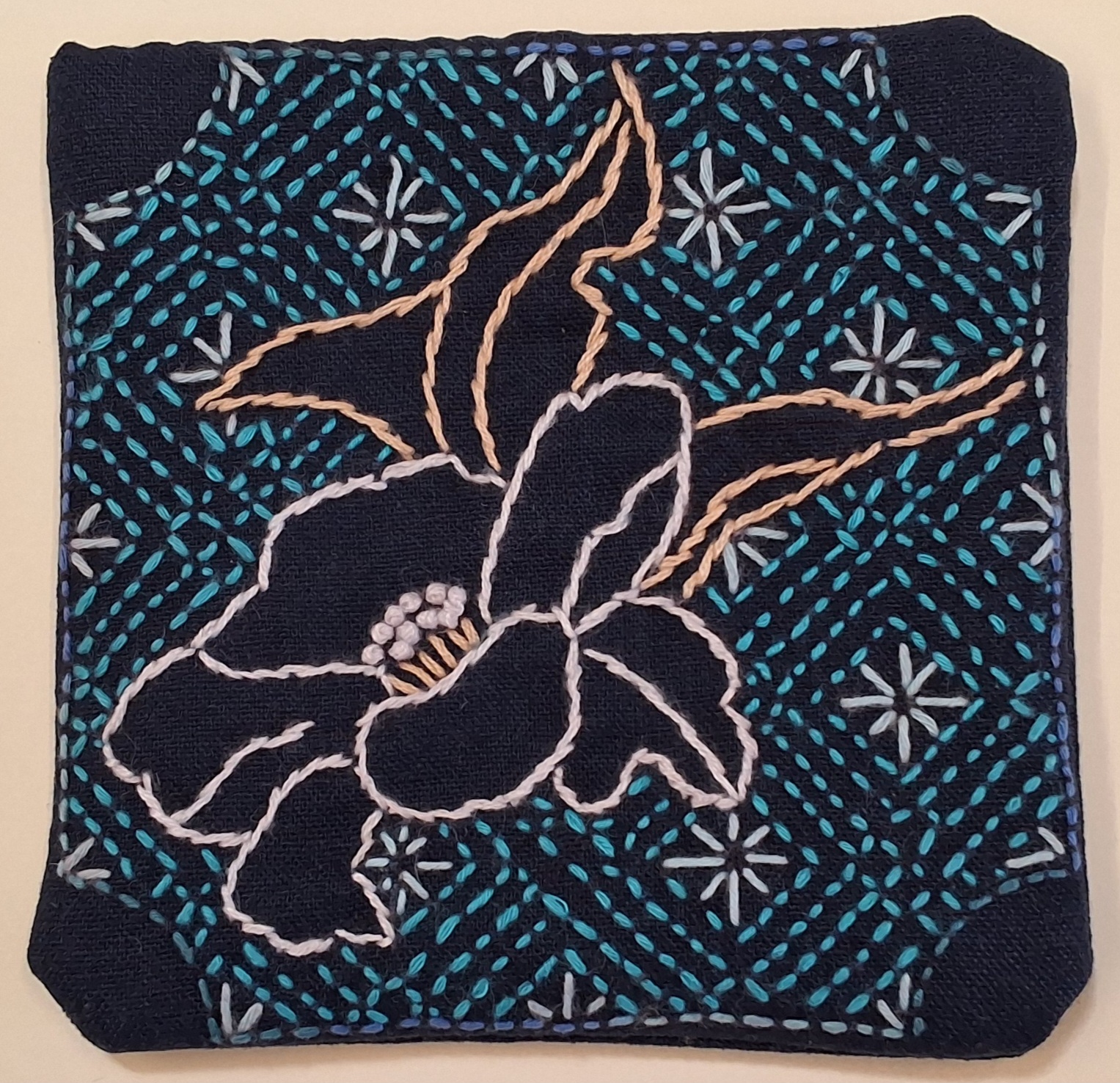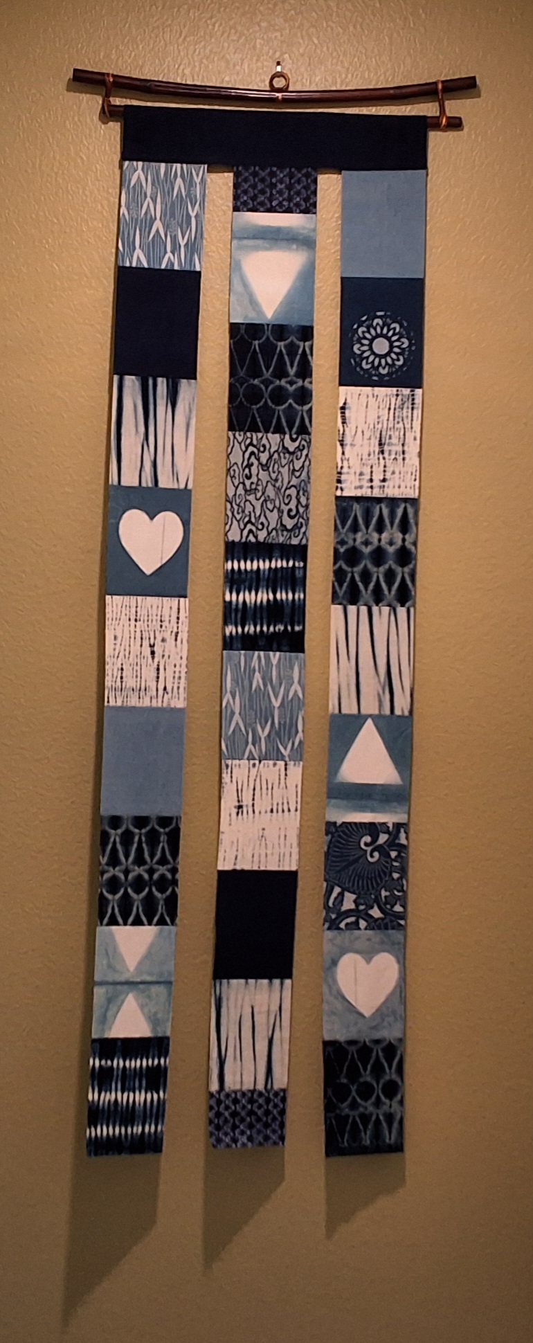 Indigo dyed textiles and stitched fiber art