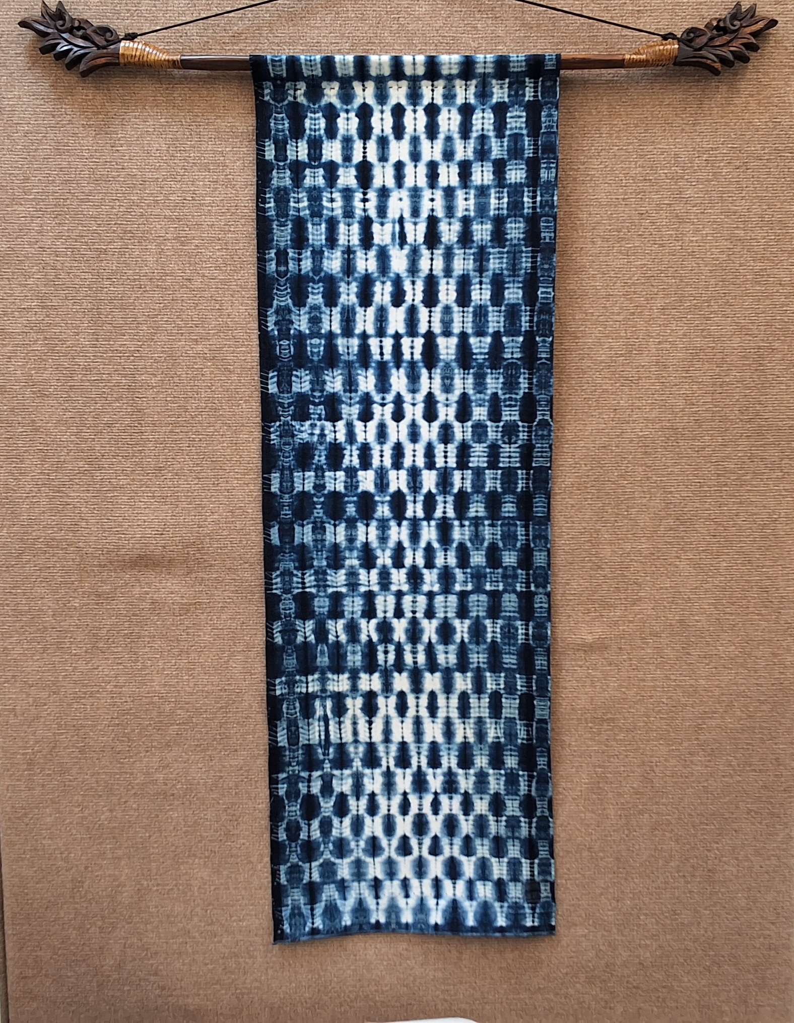 “After my trip to Japan in 2023, I became fascinated with the Japanese aesthetic and dyeing with Indigo. Combining the skills that I learned there along with other fiber art techniques including silk painting, I’m now creating a new body of work to showcase during the studio tour.””